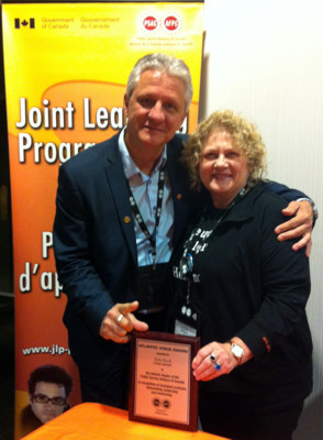 Yvan Thauvette, National President and Debi Buell, National Vice-president of Union of Veterans’s Affairs Employees visited the JLP to share Mrs. Buell’s “Atlantic Voice Award”. The Atlantic Region of the PSAC presented the award to her in recognition of her stewardship, leadership and mentorship. Debi Buell is a JLP facilitator and signatory of the regional Memorandum of Understanding between JLP, Veterans’ Affairs Canada and UVAE.